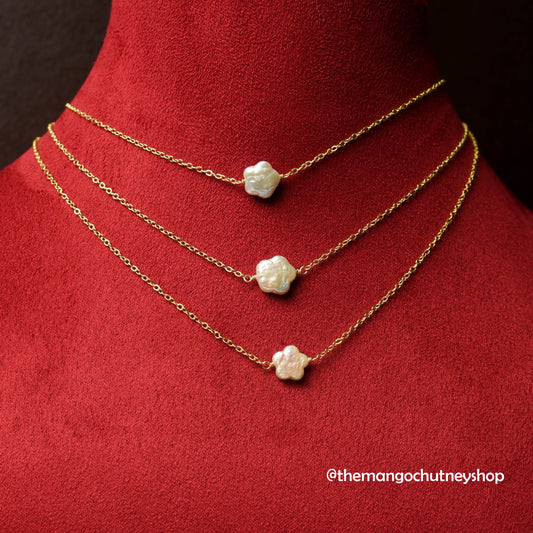 Flower Shaped Fresh Water Cultured Pearl Necklace- 18 inch